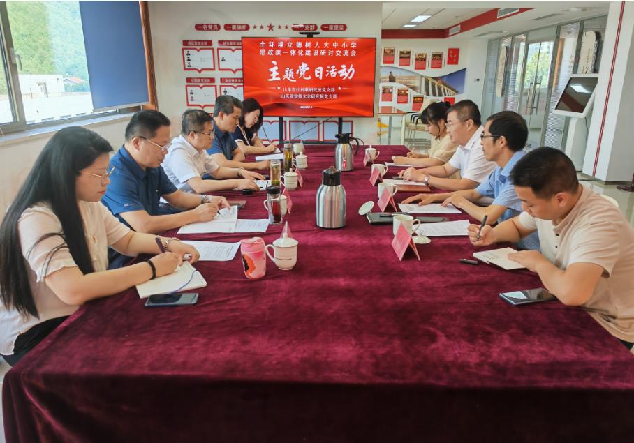 ??8月15日,我院党支部与山东省社科联研究室党支部再次联合开展主题党日活动,活动围绕“全环境立德树人大中小学思政课一体化建设”专题进行了更深入的研讨和交流。省社科联党组成员、副主席王坤,省社科联研究室主任高玉宝,四级主任科员刘世云,研究室干部范新刚,省学校文化研究院院长许福源,省学校文化研究院专家委员会副主任兼秘书长、齐鲁师范学院教授梁承锋,省学校文化研究院副秘书长王善佼,省学校文化研究院党支部组织宣传委员赵胜楠,省学校文化研究院学术部主任王悦参加了活动。